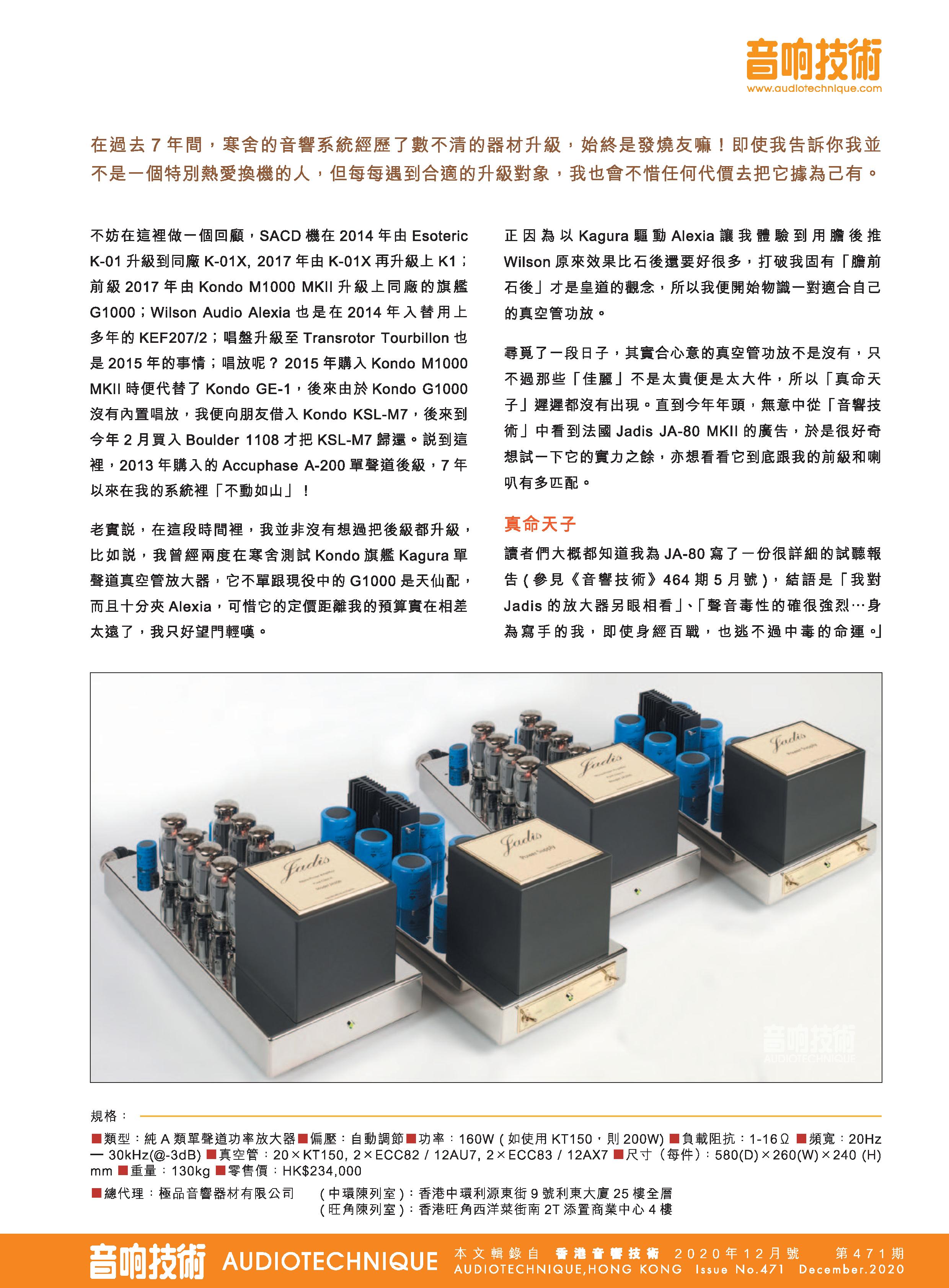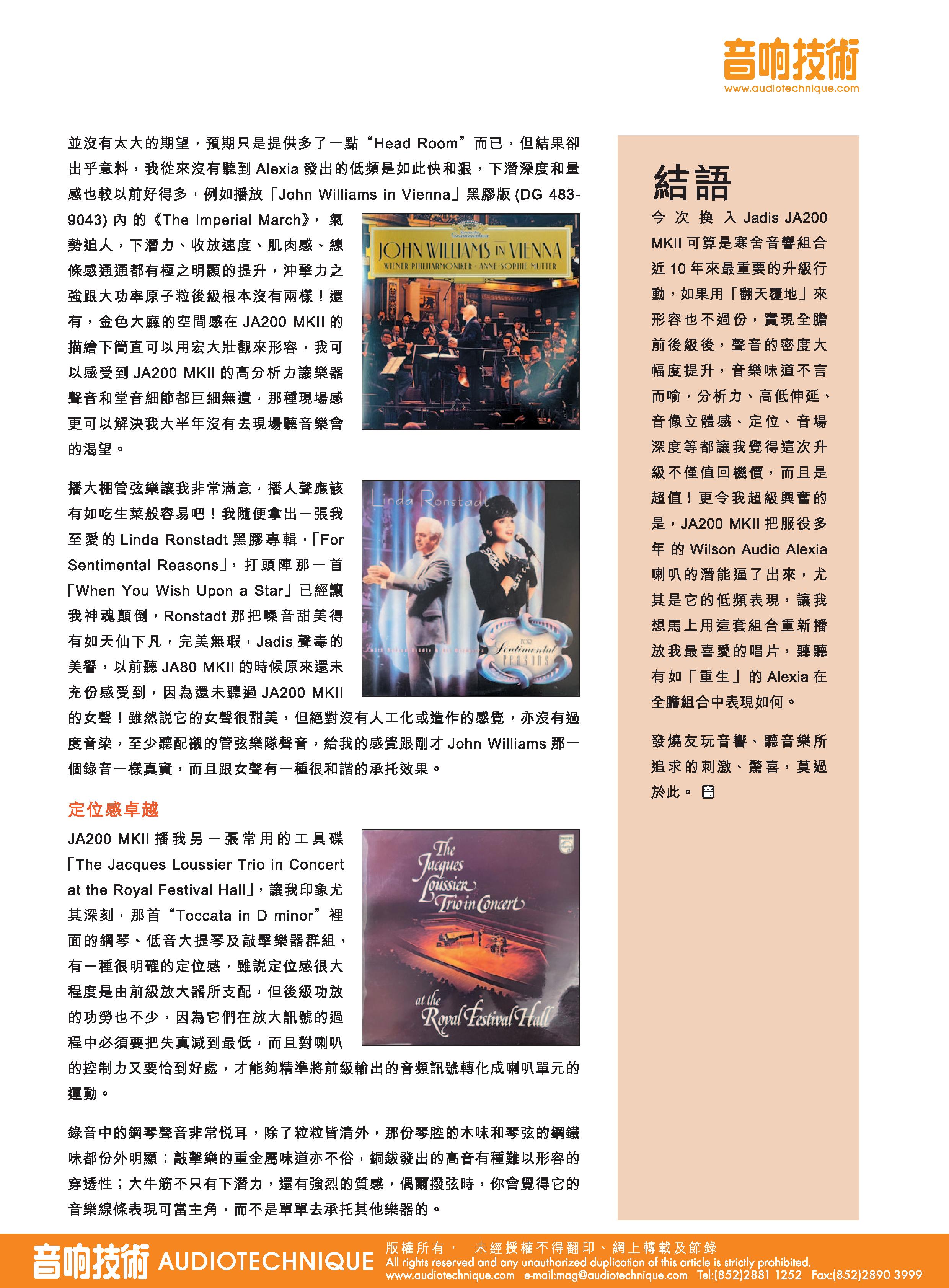 Jadis JA200 mkII 测评 作者:梁锦辉 [音响技术] ( 只限中文 )