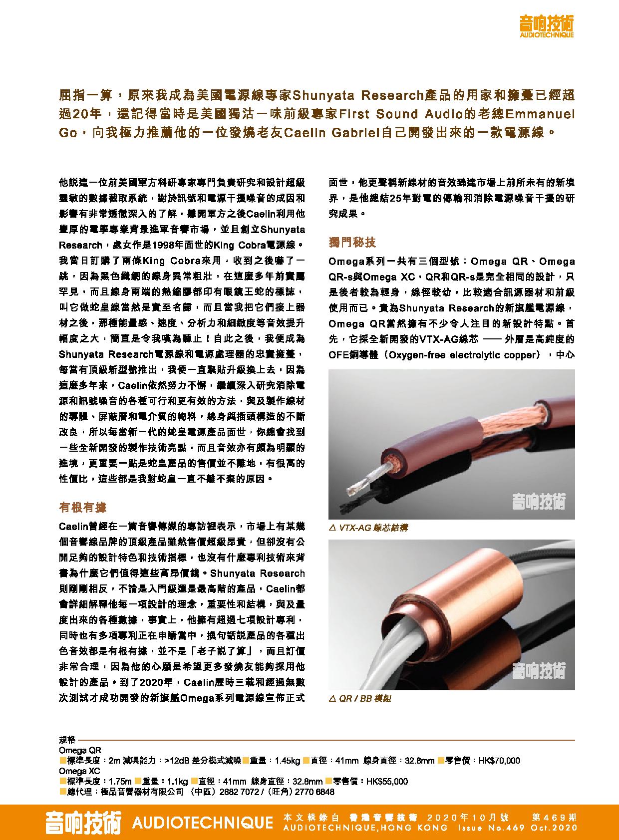 Shunyata Research Omega 系列电源线 测评。作者:大草 /音响技术 ( 只限中文 )