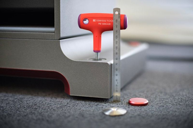 2024年,Stenheim 为 Alumine Five 系列推出了全新的 Alumine Five 平台。这款优雅的铝製底座採用实心铝材加工而成,与为 Reference 系列开发的 Reference 平台具有相同的效果,不仅提升了稳定性,还使微调设定更加简便。脚钉可从上方使用内六角扳手轻鬆调节,从而精确调整平台的高度和倾斜度。您可以选择不同的脚钉端头组合,以适应不同的地板类型,从精緻的木质地板到厚重的地毯。由于 Alumine Five 平台提供的卓越减震性能,隔音效果也提升了。该平台可改装到任何 Alumine Five 系列上。
